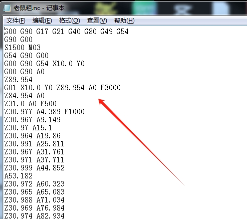 由于上一行是G01,模态有效,所以这行是G01 Z84.954 A0。